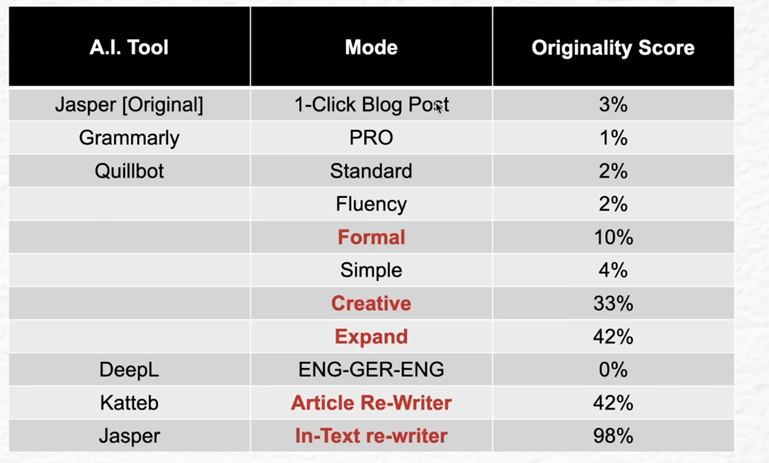 And if you're too lazy or have no time to watch the video, the gist of it is that he's using AI models to rewrite AI content and has ranked the best performers models. Jasper being the winner.